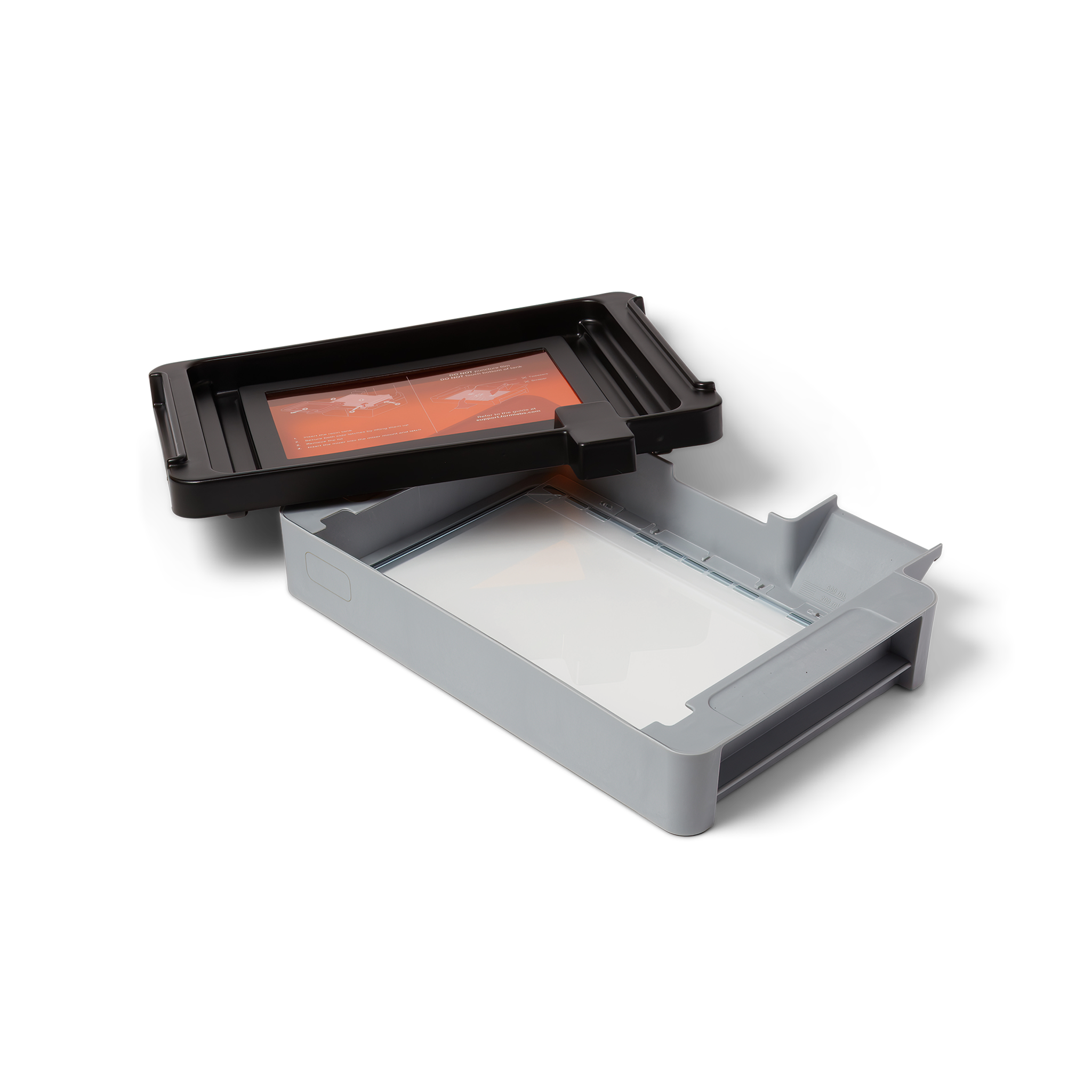 The Form 4 Resin Tank raises the bar with its advanced dual-film construction. The inner/top layer of the tank's film is stretchy, chemically inert, and secured with a high-tension steel frame. This surface has low peel force, ensuring the gentle release of each resin layer as it is printed. The outer/bottom layer of film is flexible and stronger than the standard FEP film other resin tanks use, protecting the tank from warping, punctures, and scratches.